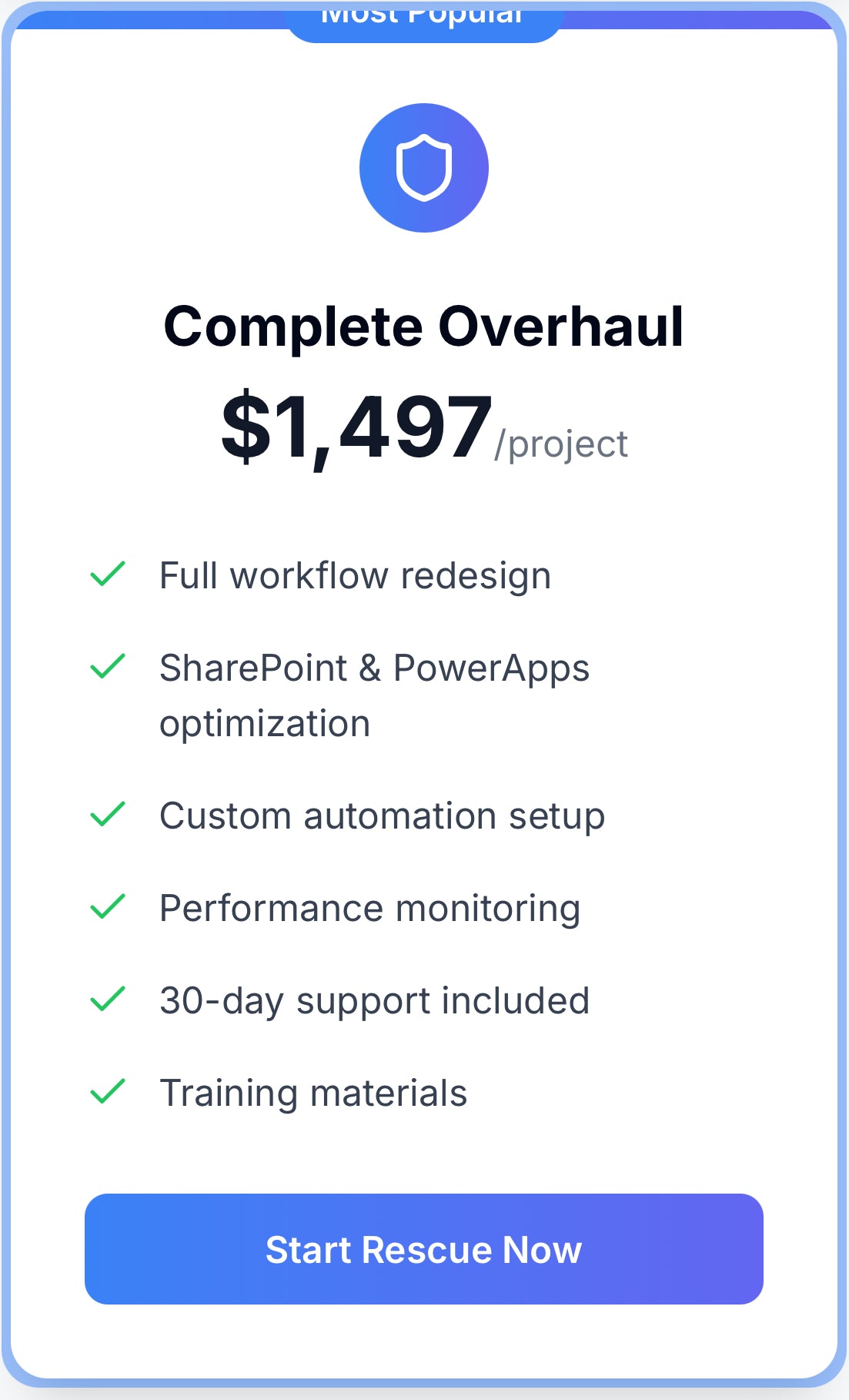 Transform your workflows from the ground up. This premium package is designed for businesses ready to fully optimize their digital operations using SharePoint and Power Platform.